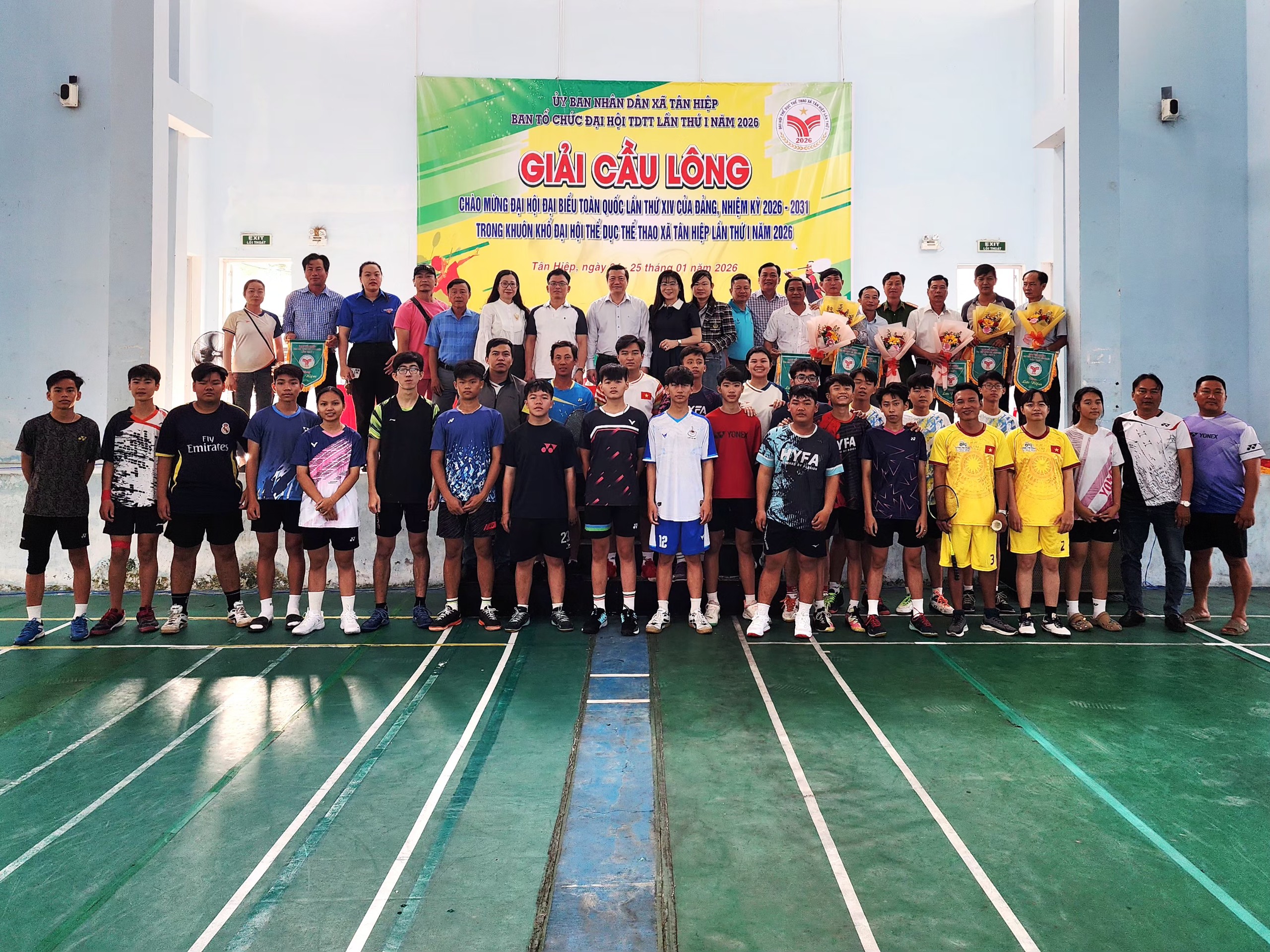Thiết thực chào mừng thành công Đại hội đại biểu toàn quốc lần thứ XIV của Đảng, ngày 24/01 Ban tổ chức Đại hội thể dục thể thao xã Tân Hiệp, tỉnh An Giang tổ chức khai mạc giải Cầu lông xã Tân Hiệp lần thứ I, năm 2026. Đây cũng là 1 trong 8 môn đăng ký thi đấu tại Đại hội thể dục thể thao xã Tân Hiệp lần thứ I, năm 2026. Tham dự lễ khai mạc có đồng chí Lê Văn Mạnh - Chánh Văn phòng Ban Tổ chức Tỉnh ủy An Giang, đồng chí Đinh Xuân Phương - Bí thư Đảng ủy, Chủ tịch HĐND xã, đồng chí Trần Thị Xuân Uyên - Phó Chủ tịch UBND xã, kiêm Giám đốc trung tâm phục vụ hành chính công xã Tân Hiệp, Trưởng Ban tổ chức Đại hội TDTT xã Tân Hiệp.